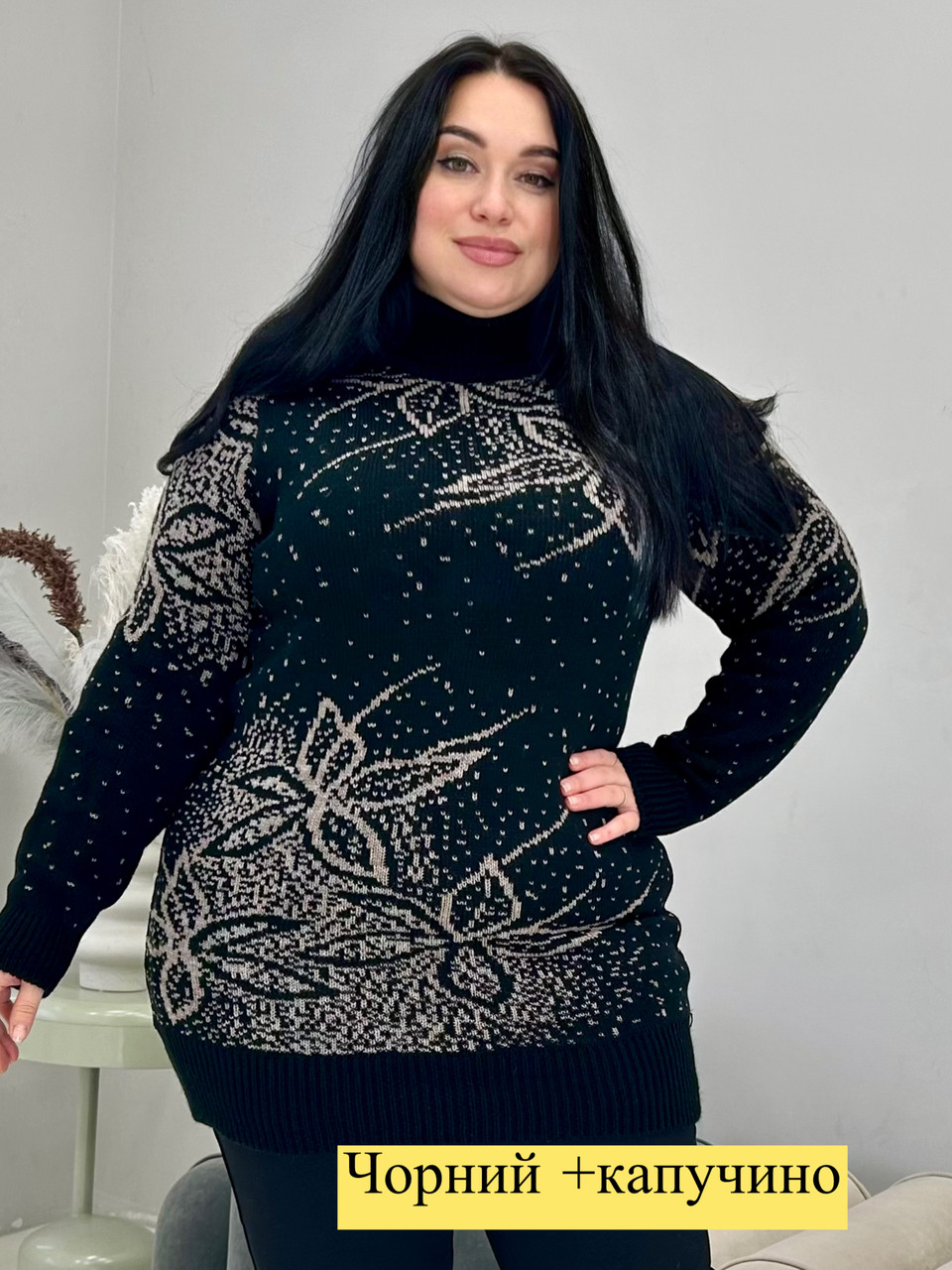 Теплий в'язаний светр із високою горловиною, гарний візерунок, товсте щільне в'язання, довжина — 86 см,